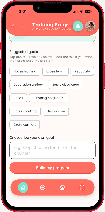 LeashAgain gives you a personalized 30–60–90 day behavior plan with daily exercises and progress tracking — designed specifically for rescue dogs.